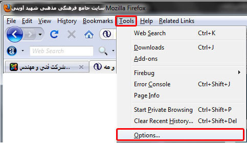 بسيار خوب براي اينكه ببينيد چقدر راحت دسترسي به يوزرها و پسوردهاي ذخيره شده در مرورگر را داريد از منوي ،Tools بر روي گزينه Options كليك كنيد .